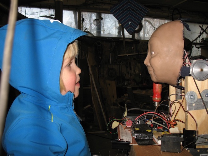 Mirjam en Fred inspireerde elkaar enorm, er ontstonden velen ideeën om poppen en mechanica + elektronica bij elkaar te brengen...Zo had Fred het idee om een marionet poppetje te mechaniseren en Mirjam wilde dol graag een huid om Fred's mechanische beesten heen maken.. Hun eerste grote project werd 'Dirk' En daarmee was Electric Circus geboren!